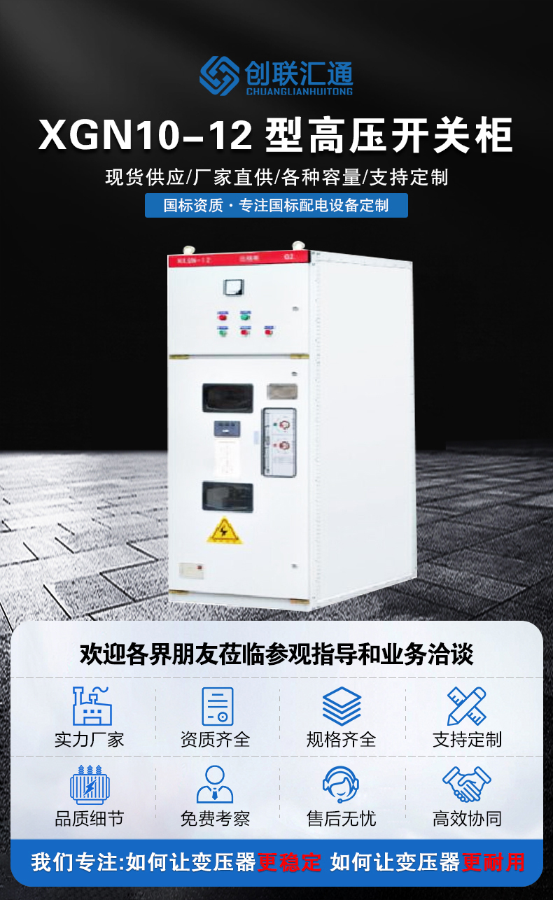XGN2-10箱型固定式金屬封閉開關(guān)設(shè)備用于12kV及以下三相交流50Hz系統(tǒng)中作為接受與分配電能之用,特別適合于頻繁操作的場(chǎng)合,其母線系統(tǒng)為單母線,也可派生出單母線帶旁路和雙母線結(jié)構(gòu)。