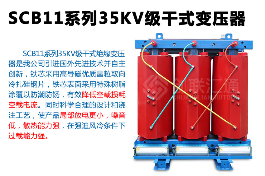 SC(B)11系列35KV環(huán)氧樹脂干式變壓器新一代節(jié)能產(chǎn)品,該系列配電變壓器產(chǎn)品使用在變壓器電壓直接從35KV電網(wǎng)轉(zhuǎn)變?yōu)?00V配電的特殊場(chǎng)合,可減少10KV輸變電環(huán)節(jié),使運(yùn)行維護(hù)費(fèi)用明顯降低。35KV級(jí)無勵(lì)磁調(diào)壓配電變壓器產(chǎn)品通過了家級(jí)鑒定,確立為高新技術(shù)產(chǎn)品。 產(chǎn)品具有損耗低、阻燃性好、承受短路能力強(qiáng)、體積小、噪音低、耐雷電沖擊性能好,溫度分布均勻等優(yōu)點(diǎn),而且由于環(huán)氧樹脂干式變壓器不使用變壓器油,不會(huì)產(chǎn)生油污染,無爆炸危險(xiǎn)。產(chǎn)品可作為配電變壓器廣泛適用于電力系統(tǒng)城網(wǎng)改造,也可用于高層建筑、機(jī)場(chǎng)、車站、港口、地鐵待對(duì)消防、環(huán)保有嚴(yán)格、特殊要求的多種場(chǎng)合。