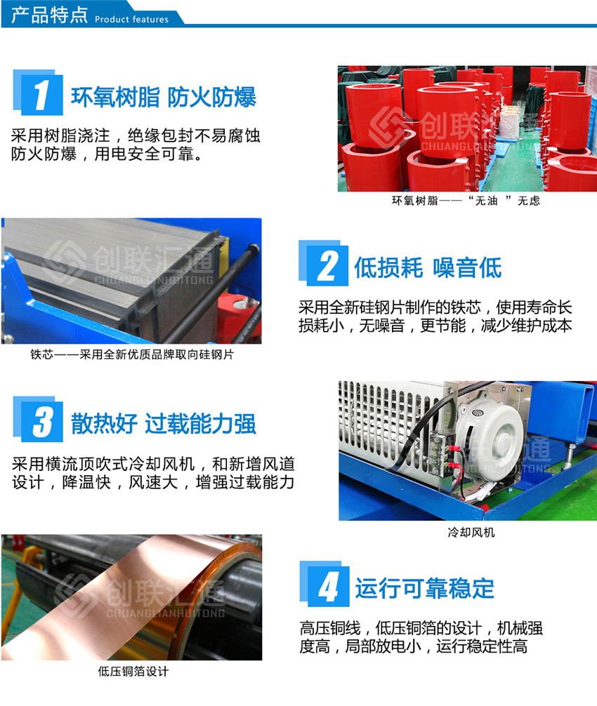 3、結(jié)構(gòu)堅(jiān)固,SCB11干式變壓器繞組采用環(huán)氧樹脂澆注固化成型,機(jī)械強(qiáng)度高,抗短路能力強(qiáng)。