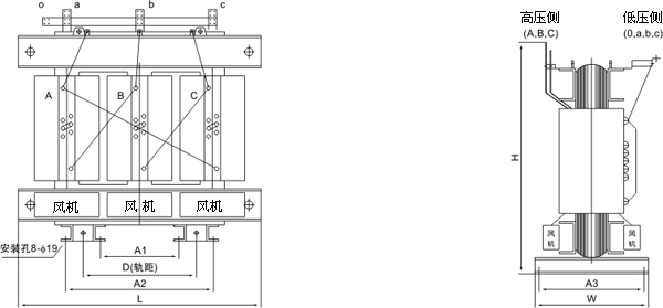 鐵芯及夾件概況經(jīng)防護樹脂特別處置,形狀美妙。高壓箔繞,高壓采取分段多層圓筒式布局,使之安匝散布均衡,漏磁小,機器強度高,抗短路才能強。